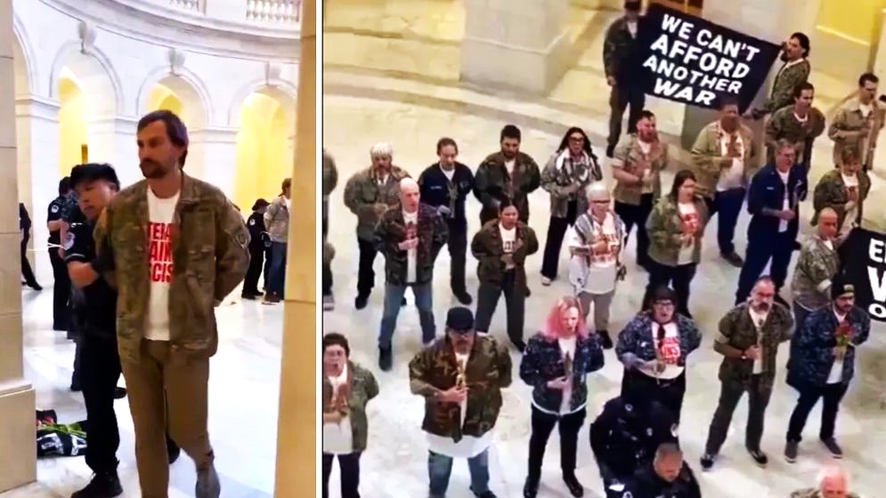 নতুন করে ইরানের সঙ্গে সম্ভাব্য যুদ্ধে জড়ানোর বিপক্ষে অবস্থান নিয়ে মার্কিন কংগ্রেস ভবনের সামনে উত্তাল বিক্ষোভ করেছেন দেশটির সাবেক সেনাসদস্যরা। সোমবার (২০ এপ্রিল, ২০২৬) ওয়াশিংটন ডিসির ক্যানন হাউস অফিস বিল্ডিংয়ে আয়োজিত এই বিক্ষোভে স্থায়ীভাবে ইরান যুদ্ধ বন্ধের দাবি জানানো হয়। এক পর্যায়ে পরিস্থিতি উত্তপ্ত হয়ে উঠলে অন্তত ৬০ জন বিক্ষোভকারীকে আটক করে পুলিশ।