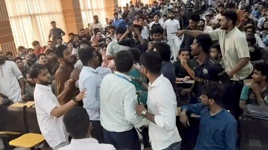 উপাচার্য অধ্যাপক ড. ইয়ারুল কবীর কঠোর বার্তা দিয়ে জানান, বিশ্ববিদ্যালয়ের ১০৩তম রিজেন্ট বোর্ডের সিদ্ধান্ত অনুযায়ী ক্যাম্পাসে সব ধরনের দলীয় রাজনীতি নিষিদ্ধ। তিনি বলেন, রাজনৈতিক ব্যানার বা প্রত্যক্ষ কর্মকাণ্ডের কোনো সুযোগ এখানে নেই। ক্যাম্পাসে মববাজি ও বিশৃঙ্খলা নির্মূলে দ্রুত প্রয়োজনীয় পদক্ষেপ নেওয়া হবে। বর্তমানে ক্যাম্পাসে থমথমে পরিস্থিতি বিরাজ করছে।