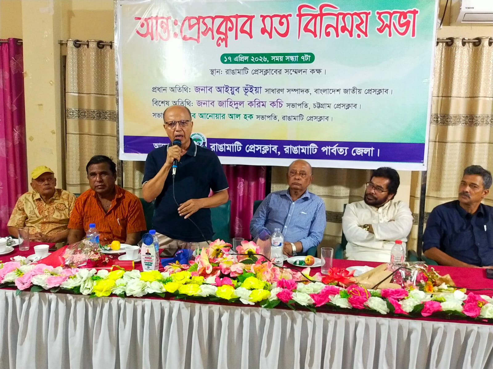 প্রধান অতিথির বক্তব্যে জাতীয় প্রেস ক্লাবের সাধারন সম্পাদক আইয়ুব ভূইয়া বলেন, সাংবাদিকদের সুরক্ষাসহ তাদের অধিকার রক্ষায় দেশের সকল প্রেস ক্লাবকে একই ছাতার নীচে আনার উদ্যোগ নেয়া হবে। তিনি বলেন, প্রাথমিক ভাবে দেশের বিভাগীয় প্রেস ক্লাবগুলোকে জাতীয় প্রেস ক্লাবের আওতাভুক্ত করা হবে এবং পরবর্তীতে দেশের প্রতিটি প্রেস ক্লাবকে জাতীয় প্রেস ক্লাবের আওতায় আনা হবে। মতবিনিময় সভায় চট্টগ্রাম এবং রাঙ্গামাটিতে কর্মরত সাংবাদিকরা উপস্থিত ছিলেন।